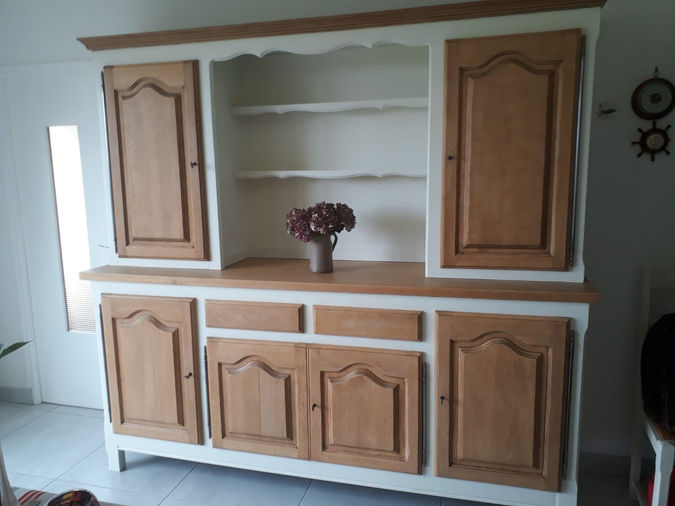 - buffet 2 corps porcelaine avec traitement bois saturateur imprégnant et vernis PU mat