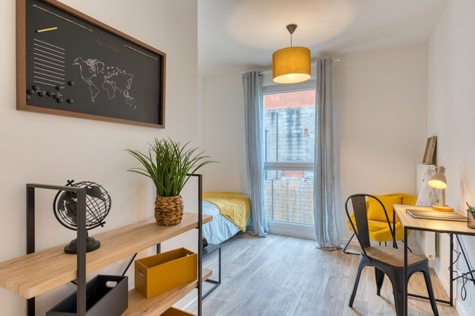 Valorisation immobilière d'un appartement T4 dans un programme immobilier vente de logements neufs pour un promoteur bailleur - création d'ambiance, emmenagement et prêt de meubles sur la durée du contrat.